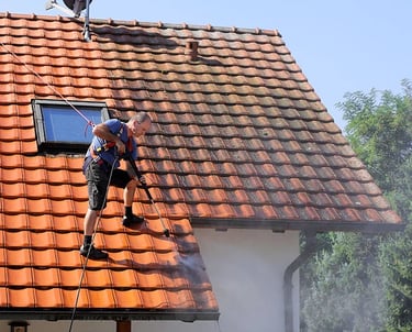 Limpieza profunda de tejados, eliminando hojas, suciedad y musgo.